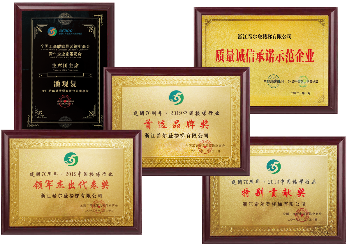在不斷提升希爾登品牌和企業(yè)實(shí)力的同時(shí),希爾登一直熱心參與樓梯行業(yè)的健康發(fā)展;參與創(chuàng)立全國(guó)工商聯(lián)樓梯專(zhuān)委會(huì)并被推選為中國(guó)樓梯品牌聯(lián)盟執(zhí)行主席和樓梯專(zhuān)委會(huì)執(zhí)行會(huì)長(zhǎng);憑借在行業(yè)內(nèi)的專(zhuān)業(yè)地位,希爾登參與了《木質(zhì)樓梯》,《木質(zhì)樓梯安裝驗(yàn)收和使用規(guī)范》,《住宅內(nèi)用樓梯》,《建筑用玻璃與金屬護(hù)欄》四個(gè)國(guó)家和行業(yè)標(biāo)準(zhǔn)的起草工作。先后榮獲“中國(guó)樓梯十大品牌”、“金木樓梯領(lǐng)軍品牌”、“中國(guó)泛家居發(fā)展中企業(yè)500強(qiáng)”、“中國(guó)家裝行業(yè)金鉆獎(jiǎng)”、“金屬木質(zhì)樓梯一級(jí)資質(zhì)”等二十多個(gè)榮譽(yù)和稱(chēng)號(hào)。我們幾乎參與和見(jiàn)證中國(guó)樓梯發(fā)展歷程中的所有重大事件。希爾登過(guò)去,現(xiàn)在和未來(lái)都是中國(guó)樓梯的標(biāo)桿企業(yè)。